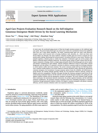 近日,我校经济与管理学院陶希闻老师以第一作者、通讯作者,凯发k8官网为第一署名单位,在国际权威期刊《Expert Systems With Applications》在线发表最新研究论文:Aged Care Projects Evaluation Research Based on the Self-Adaptive Consensus Emergence Model Driven by the Social Learning Mechanism。该期刊是Elsevier出版社旗下的计算机科学领域顶级期刊,中科院一区TOP期刊,致力于报道计算机科学取得的突破性进展,涉及领域包括计算机、人工智能、运筹学与管理科学等,影响因子8.5。