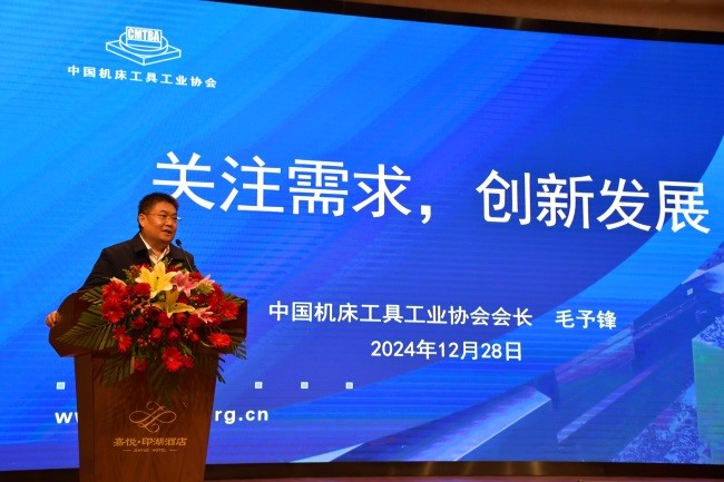 毛予锋以《关注需求,创新发展》为题,通过详实的数据分析了全球及中国机床生产消费的变化趋势,强调需要关注产业链、供应链的韧性与安全,要做到实体经济、科技创新、现代金融、人力资源“四要素协同”,产业链、创新链、资金链、人才链“四链融合”。