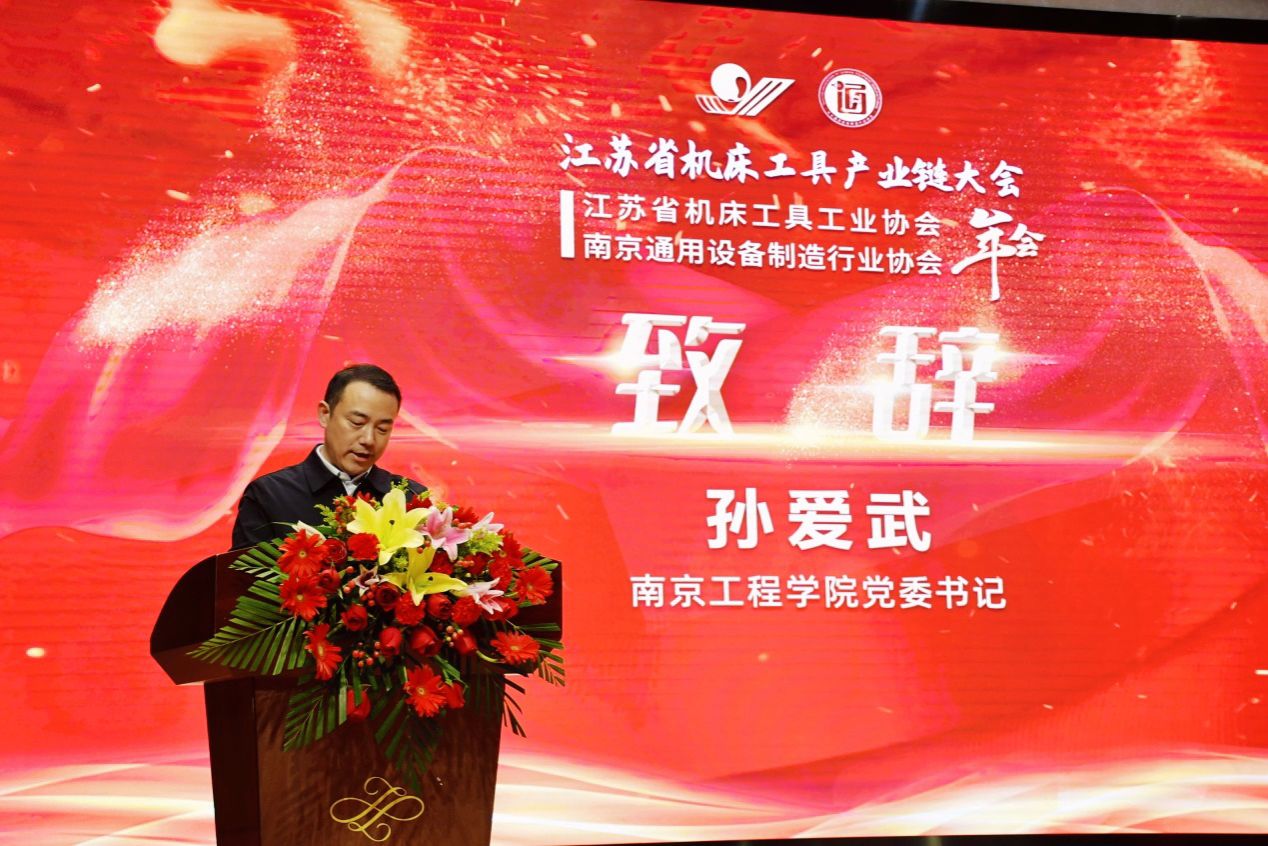 12月28日,由我校与江苏省机床工具工业协会主办的江苏省机床工具产业链大会暨江苏省机床工具工业协会、南京通用设备制造行业协会(2024)年会在我校召开。党委书记孙爱武,党委常委、副校长朱松青;中国机床工具工业协会会长毛予锋,省工业与信息化厅装备工业处处长刘培,省机床工具工业协会会长尹仁华,东南大学机械凯发原院长、博士生导师汤文成,我校杰出校友、工业富联非独立董事、深圳圆梦精密技术研究院院长李军旗,以及相关行业领导、专家和业内300多名企业代表参加会议。