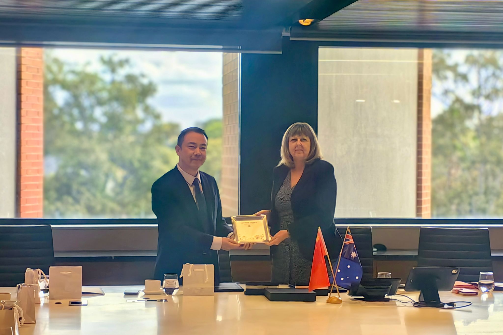 8月8日至9日,孙爱武一行先后访问西悉尼大学、麦考瑞大学。在西悉尼大学,代表团与常务副校长狄波拉·斯维尼、国际事务副校长尼科琳·默多克等人会谈。斯维尼介绍了该校近年来在学科排名、全球影响力及国际合作等领域的突出成效,高度评价两校合作潜力,期待在备忘录框架下推进务实合作。孙爱武感谢校方的热情接待,并指出,西悉尼大学作为澳大利亚创新力领先高校,在应用语言学、可持续发展等领域的成就值得借鉴,希望双方在人文社科、工程建筑、自动化等领域深化师生互访与科研协作。会谈后,两校签署应用语言学专业“3+1+1”本硕连读项目合作协议,该项目将助力学生五年内获中澳双学士学位及澳方硕士学位,为国际化人才培养搭建新平台。