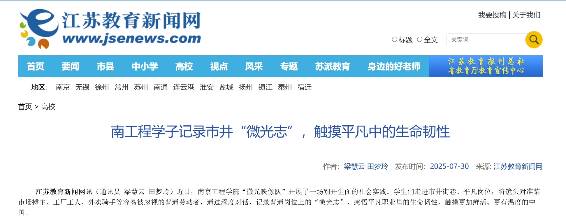 《江苏教育新闻网》:南工程学子记录市井“微光志”,触摸平凡中的生命韧性