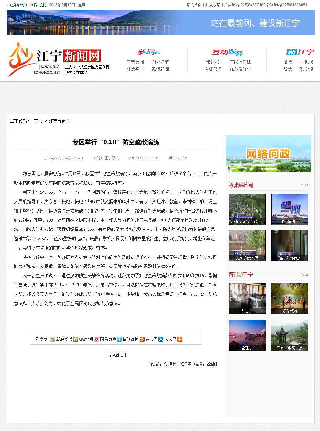 《江宁新闻网》:我区举行“9.18”防空疏散演练